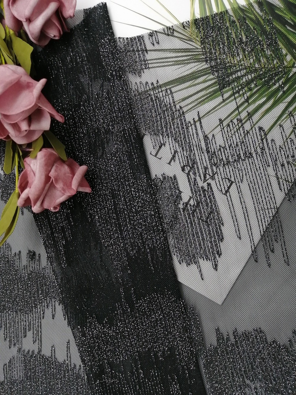 - 영부인의 의류 여성복, 치마, 어린 소녀 드레스, 집의 직물, 커튼, 베딩 품목, 의류, 모자, 웨딩 드레스, 블라우스, 기타 등등을 위한 검은 금속성 루렉스 은 방사 기하학적인 선 엠브로이드된 레이스천.