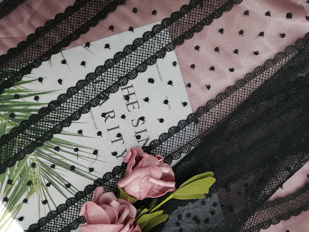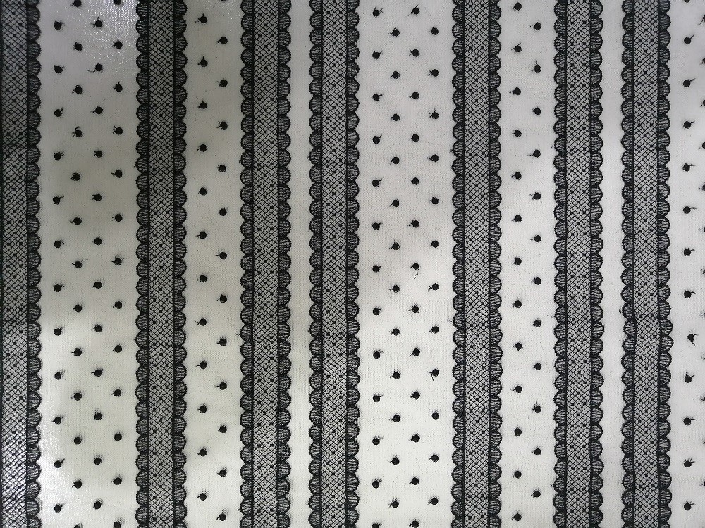 - 영부인 의류 집 직물 어린 소녀 드레스를 위한 검은 도트 라인 기하학적인 얇은 명주 그물 메쉬 엠브로이드된 레이스천은 OEKO-텍스 기준 100을 위한 요구조건을 충족시킬 수 있습니다 .
