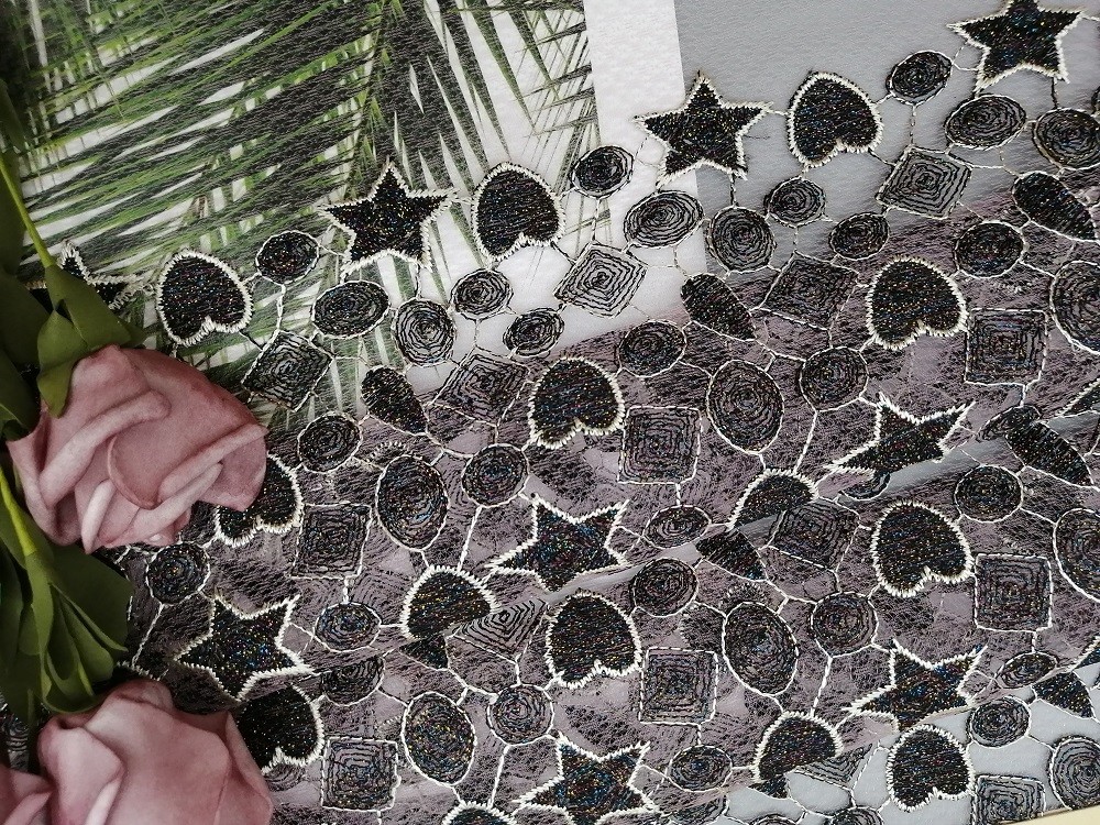 이브닝 드레스 영부인의 드레스 의복 브랜드 어린 소녀 드레스를 위한 별 모양 루렉스 금속성 빛깔 자수 원단은 집을 위한 것입니다 훼브릭, 커튼, 베딩 품목, 의류, 모자, 웨딩 드레스, 블라우스, 영부인의 의복, 식탁보, 어린 소녀 드레스, 패션 여성 신발, 바지, 바지, 개요, 재킷, 등.