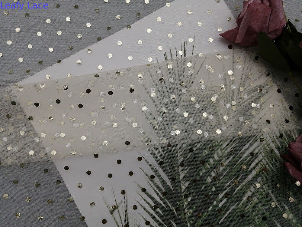 - 이브닝 드레스 영부인의 의복 신발 어린 소녀 드레스를 위한 아이보리 물방울 무늬 금속성 반짝거림 얇은 명주 그물 메쉬 호일 인쇄형 패브릭은 OEKO-텍스 표준 100을 위한 요구조건을 충족시킬 수 있습니다 .