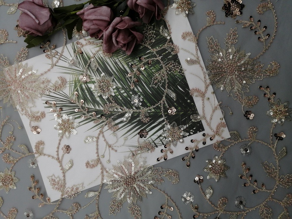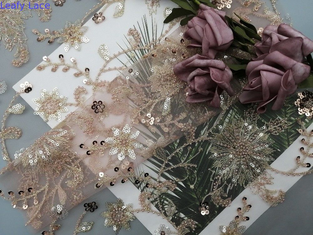웨딩 드레스 영부인 드레스 장식 의류가 여성 드레스에 적합하고, 치마, 어린 소녀 드레스, 집의 직물, 커튼, 베딩 품목, 의류, 모자, 웨딩 드레스, 블라우스, 기타 등등이기 때문에 핑크색 꽃 번쩍이는 금속 조각 레이스천 파티 구성은 자수 원단을 비드로 만들었습니다.