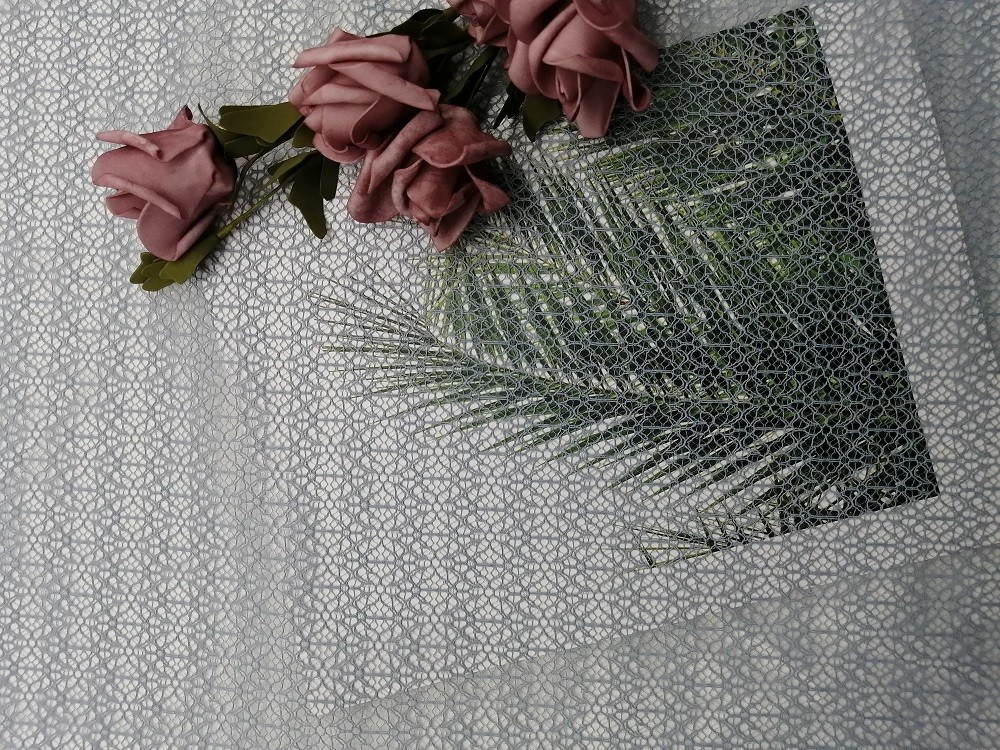 강조하다: | 100% 폴리에스테르 회색 끈 정비,가벼운 기하학적 끈 정비,135 센티미터 얇은 명주 그물 기하학적 끈 정비 |