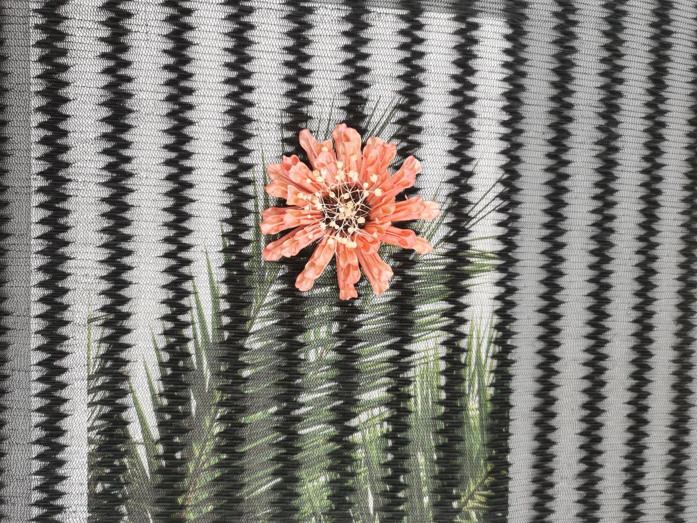A. 레이스천, 끈 정비, 자수 원단, 얇은 명주 그물 망조직, 얇은 명주 그물 포일 구성, 얇은 명주 그물 프린팅 구성, 얇은 명주 그물 플로킹 구성, 얇은 명주 그물 번쩍이는 금속 조각 구성.