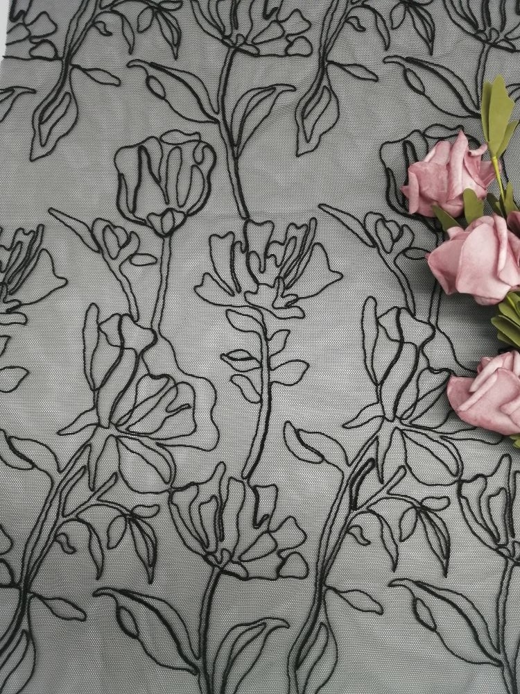 코드화된 검은 과장 3D 꽃 레이스천 꽃 얇은 명주 그물 메쉬