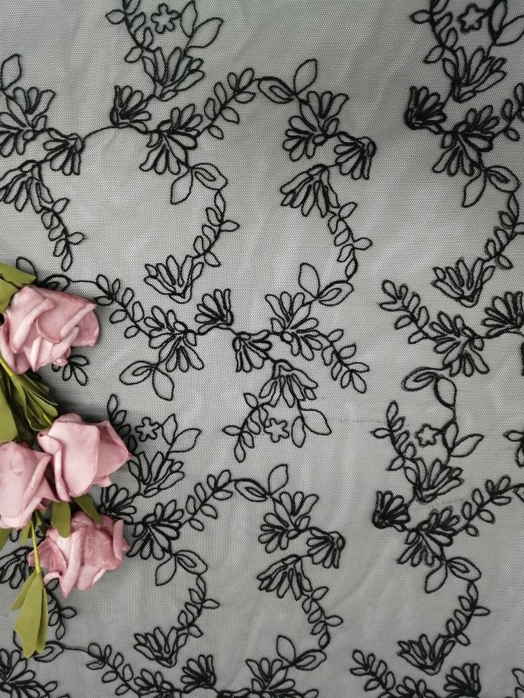 레이스천 은메달 얇은 명주 그물 메쉬 또는 여성 장기간 치마 드레스 의류 어린 소녀 드레스, 집의 직물, 커튼, 베딩 품목, 의류, 모자, 웨딩 드레스, 블라우스, 균일한 남성들 셔츠, 기타 등등의 도처에서 검은 꽃 코드화된 과장.