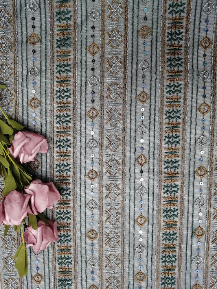 | 강조하다: | OEM 기하학적 빛깔 자수 원단,번쩍이는 금속 조각 보일은 자수 원단을 착색시켰습니다 |