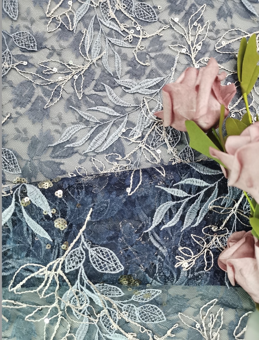 엠브로이드된 레이스천이 이브닝 드레스 영부인 드레스 장식 소녀 드레스를 위해 인 푸른 얇은 명주 그물은 여성 드레스에 적합하고, 치마, 어린 소녀 드레스, 집의 직물, 커튼, 베딩 품목, 의류, 모자, 웨딩 드레스, 블라우스, 기타 등등입니다.
