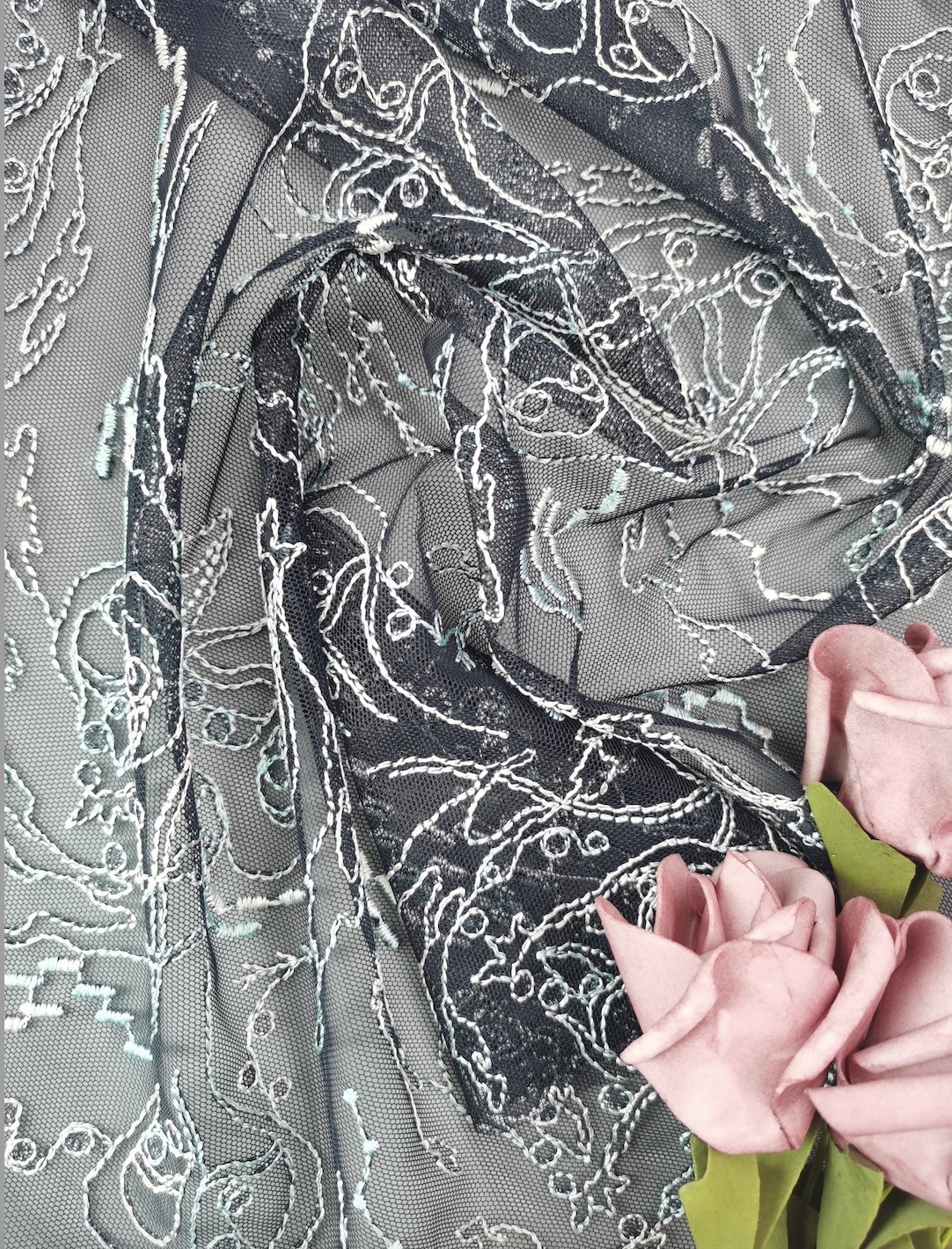 도트 얇은 명주 그물 엠브로이드된 레이스천 상술 :