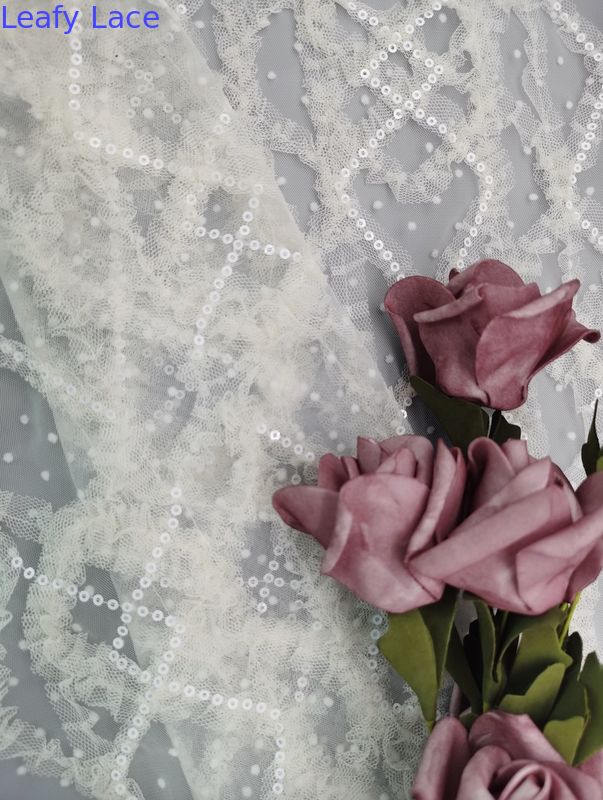 | 강조하다: | 번쩍이는 금속 조각과 꽃 얇은 명주 그물 레이스천,신부 드레스 번쩍이는 금속 조각 엠브로이드된 구성,OEM 신부 순수한 얇은 명주 그물 레이스천 |