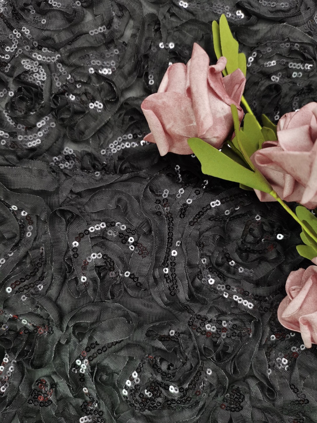 드레스를 편평하게 하기 위한 검은 엠브로이드된 레이스천 번쩍이는 금속 조각 최고급 번쩍이는 금속 조각