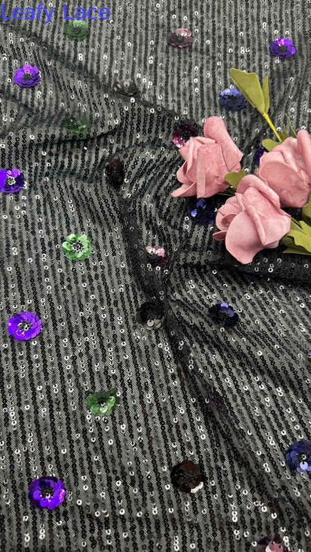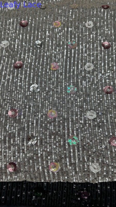 강조하다: | 시킨 찌감치 직물,3D 플로럴 웨딩 자수 원단,자수가 놓인 우아한 시퀸 원단 |