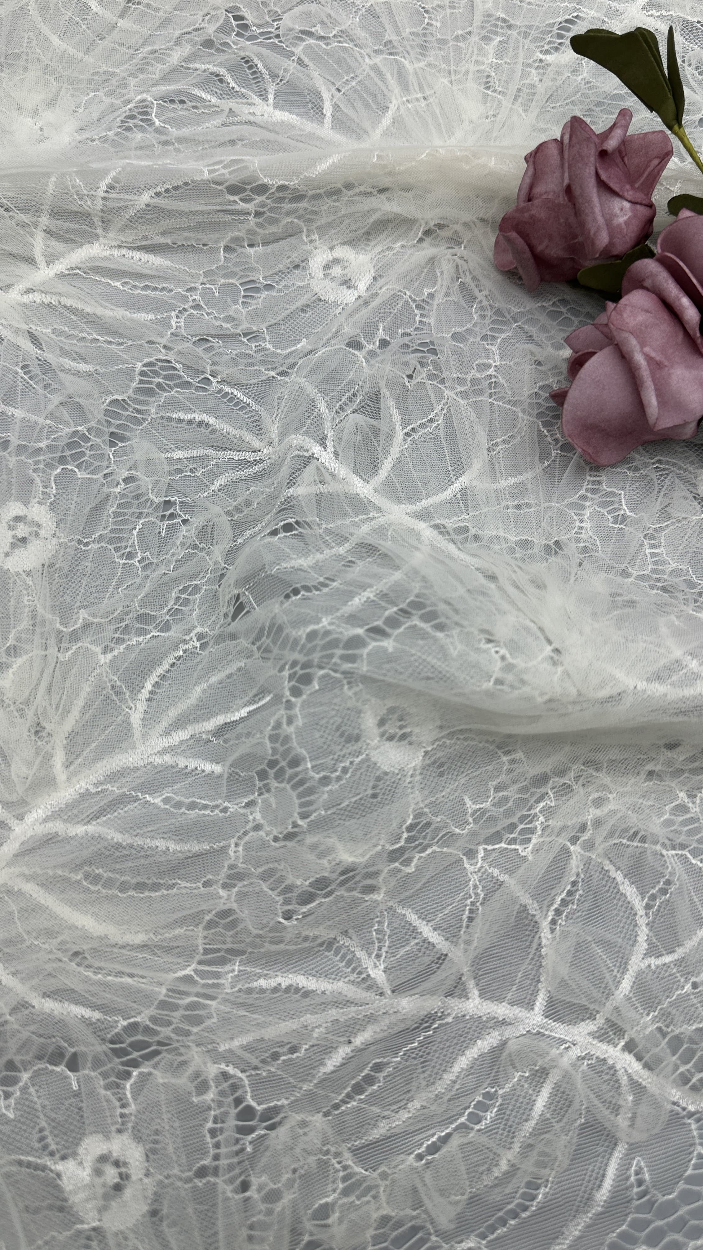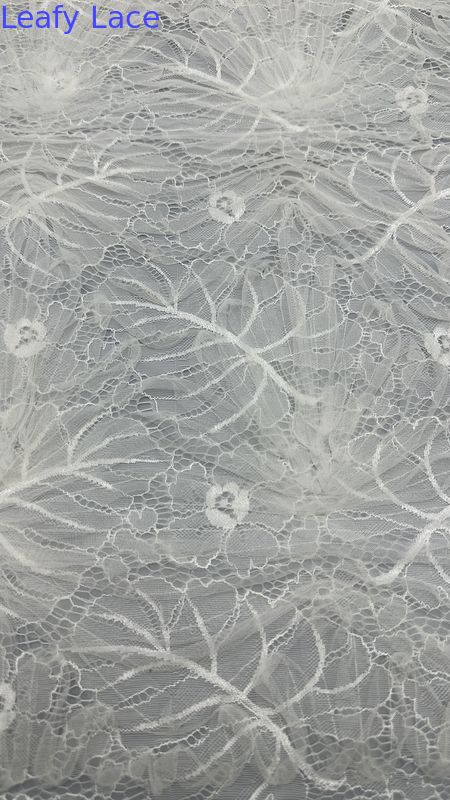 강조하다: | 화이트 자수 레이스 원단,통기성 웨딩 레이스 원단,우아한 잎 자수 메쉬 |