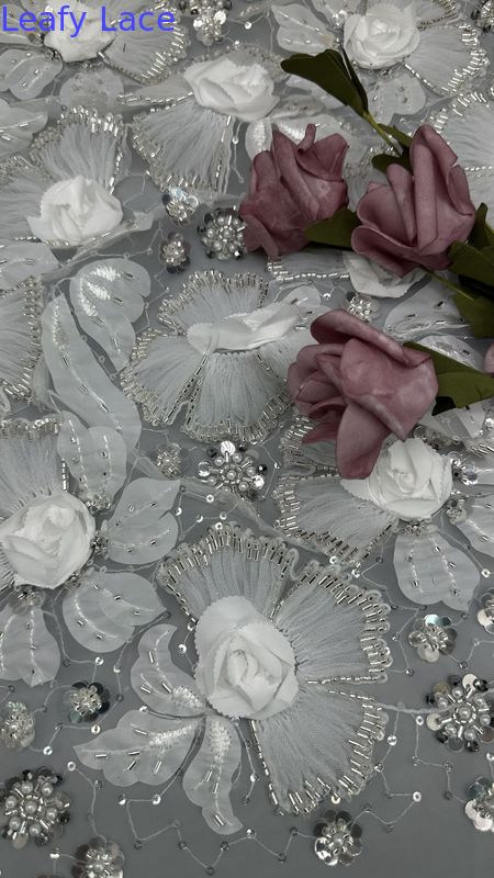 강조하다: | 진주로 수직된 직물,럭셔리 오케이션 랜스 직물,우아 한 시킨 蕾丝 가루 |
