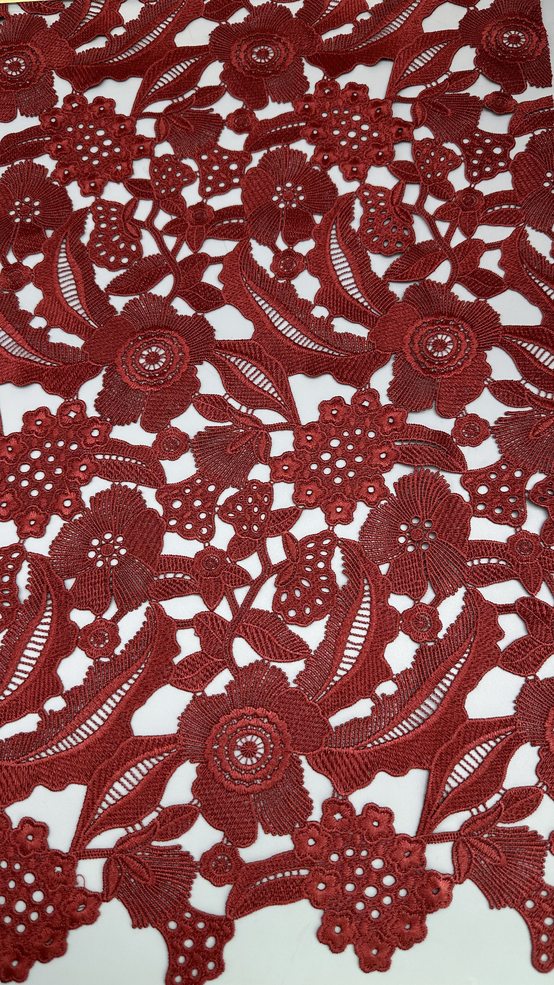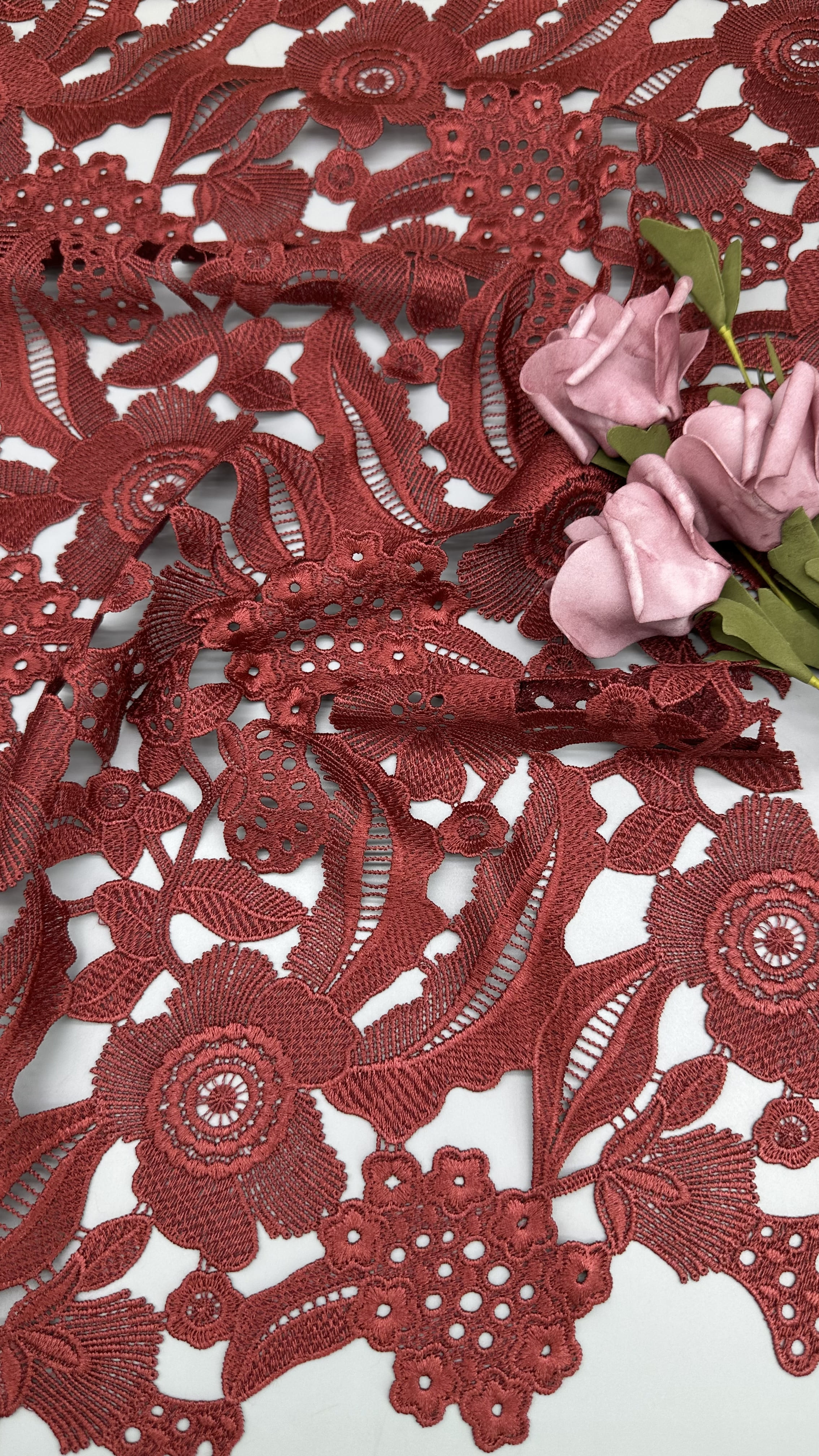 강조하다: | 공허하게 숨을 쉬는 蕾丝 천,잎에 수직 된 蕾丝 직물,우아 한 붉은 색 의 renda fabric |