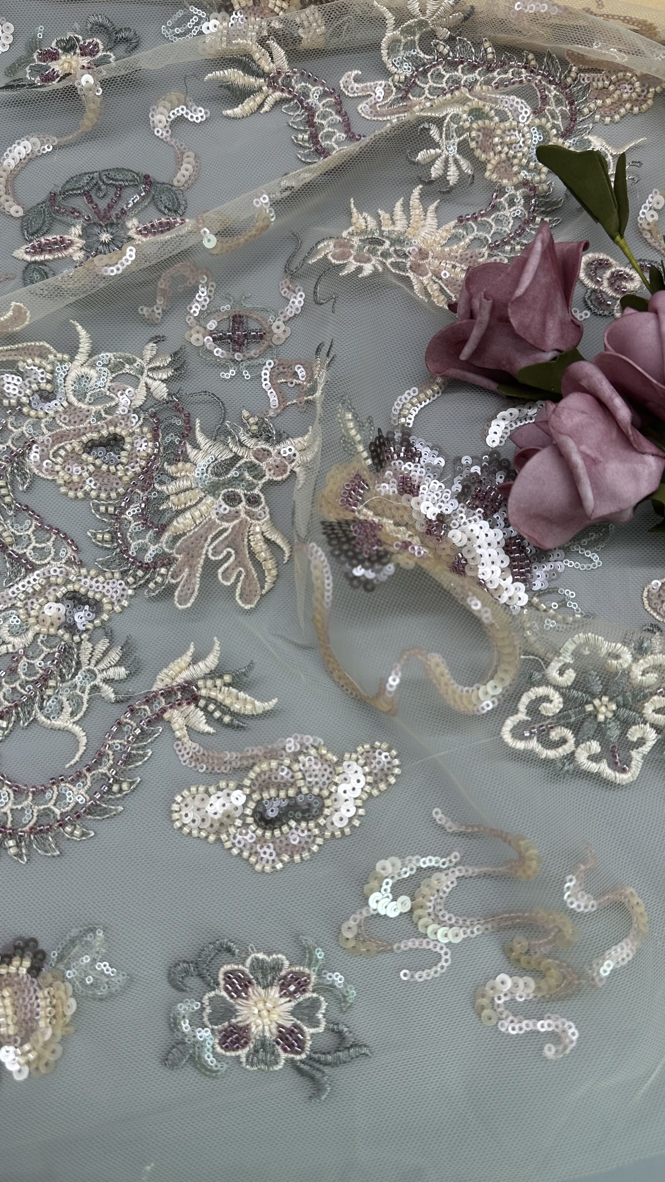강조하다: | 메쉬 그라운드 자수 메쉬 레이스 원단,스팽글 자수 메쉬 레이스 원단 |