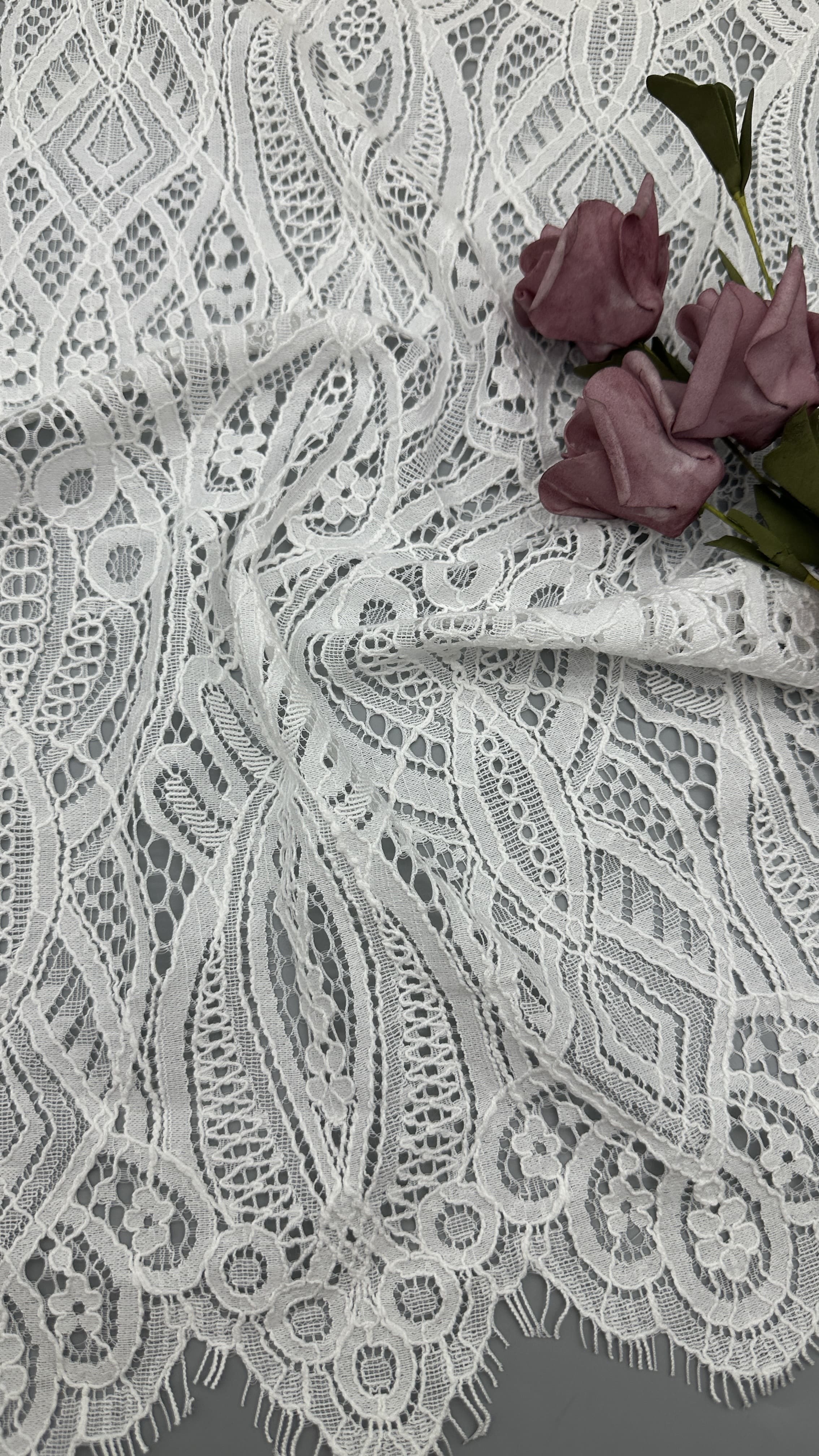 A creative team keeps abreast of trends. The research facilities and production equipment are all advances. Most of our patterns are copyrighted and based on original artwork. Most important is our focus on breakthrough of the techniques that advance the art of lace marking . Additionally, Leafy Lace Carries the enough greige and finished colors to response to our customers’ s rapidly changing needs.