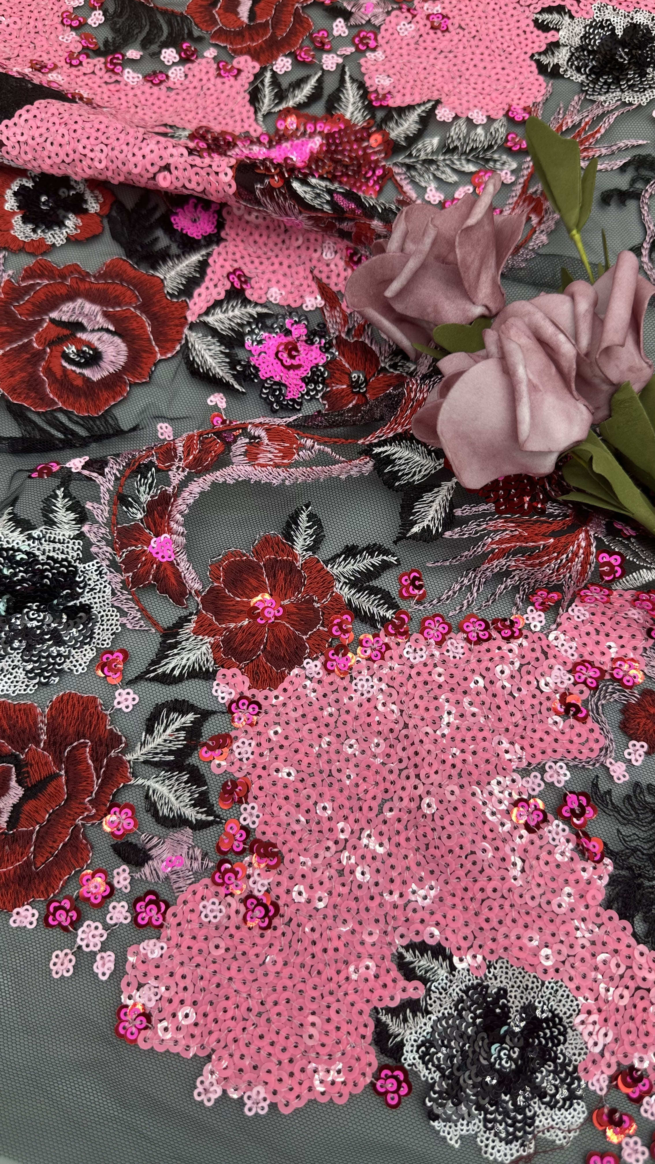 | 강조하다: | 저녁 드레스를 위한 수직 蕾丝 직물,폴리에스테르 시킨 찌감치 직물,화려한 스팽글 자수 레이스 원단 |