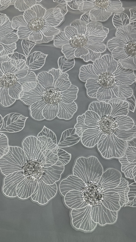 강조하다: | 구슬 자수 폴리에스터 원단,가운용 맞춤 구슬 원단,드레스를 위한 빛나는 자수 원단 |