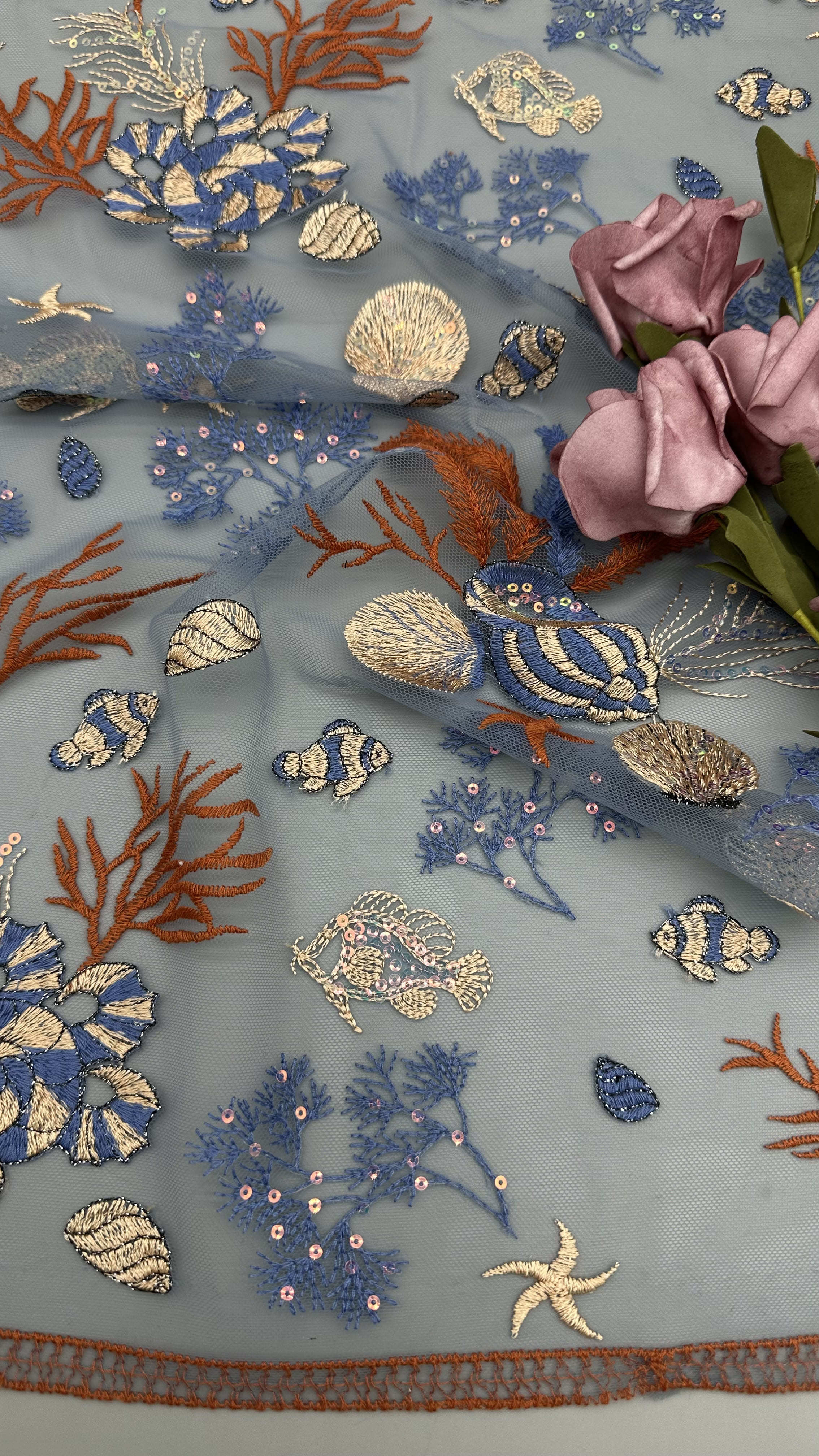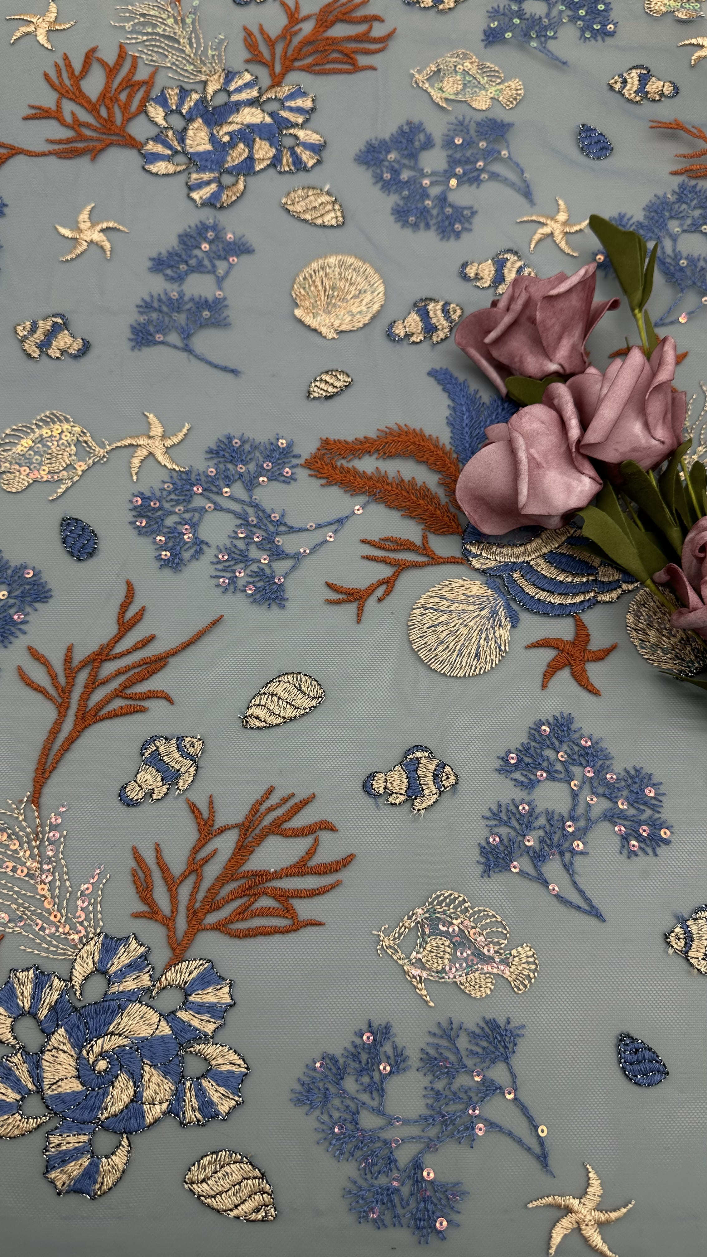 섬세한 잎 모티프가 있는 레이스 자수 원단은 우아함, 질감, 복잡한 디테일을 제공하여 웨딩 및 파티 드레스에 인기 있는 선택입니다. 생산 기술은 전통적인 장인 정신과 현대적인 섬유 혁신의 조화를 포함합니다.