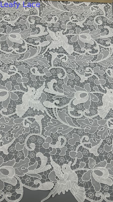 섬세한 잎모티브가 있는 蕾丝 수염 천은 결혼식 드레스와 파티 드레스를 입는 데 인기 있는 선택이며, 우아함과 질감과 복잡한 세부사항을 제공합니다.그 생산 의 기술 은 전통 공예 기술 과 현대 의 섬유 혁신 의 혼합 을 포함 합니다.