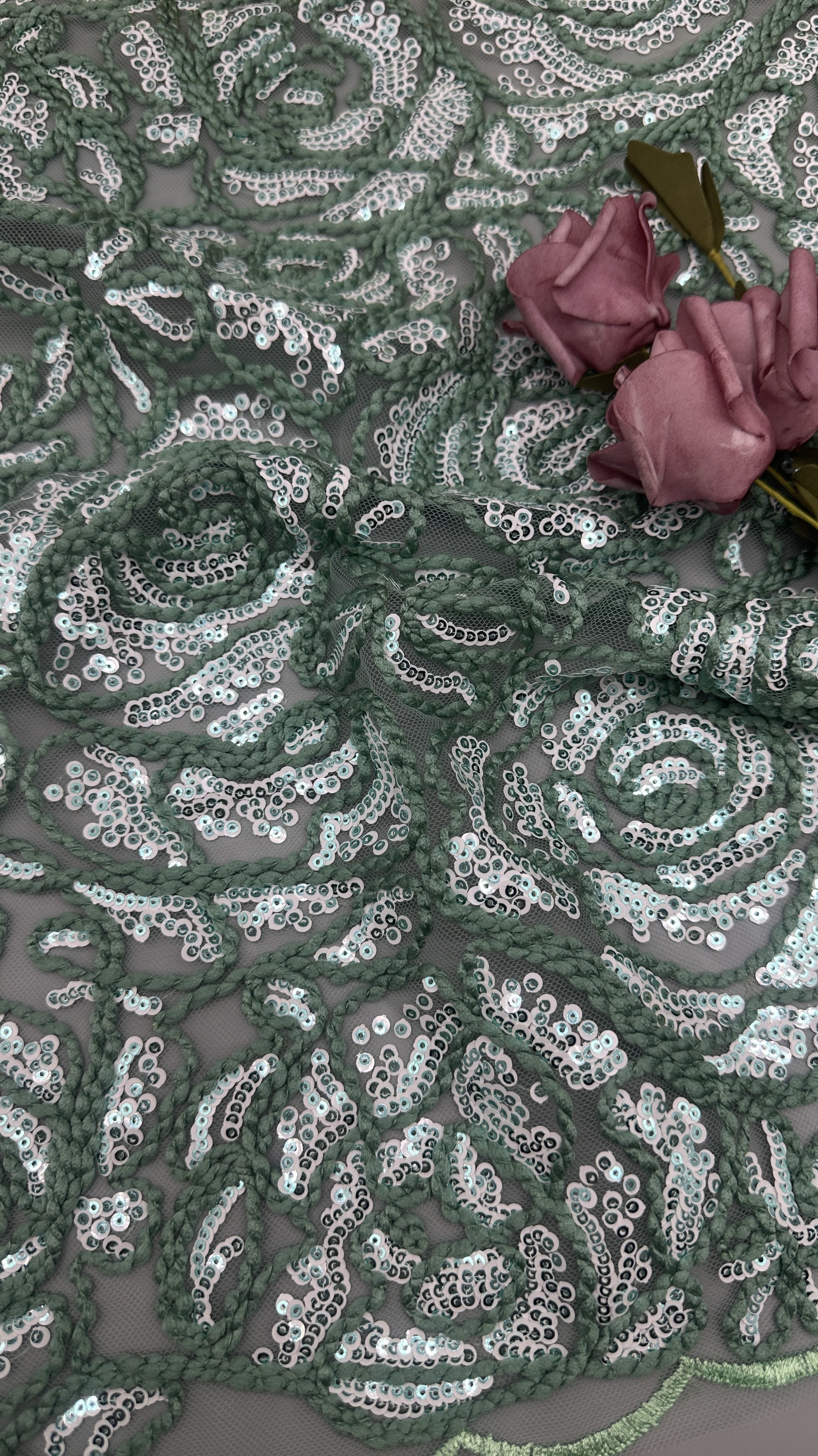 | 강조하다: | sequin embroidered lace fabric,3D floral design fabric,customized fabric for gowns |