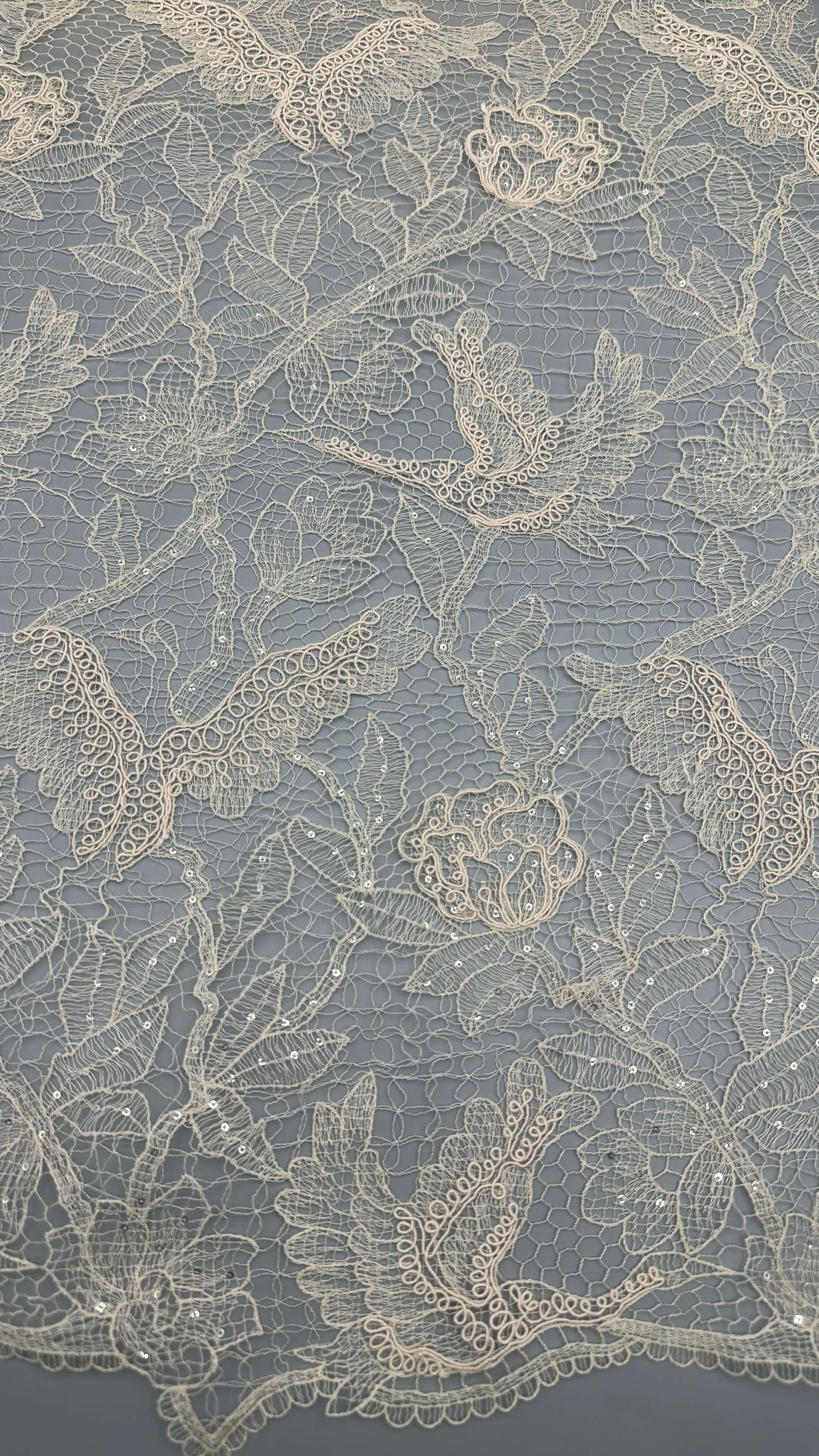 섬세한 잎모티브가 있는 蕾丝 수염 천은 결혼식 드레스나 파티 드레스를 입는 데 인기 있는 선택이며, 우아함과 질감과 복잡한 세부사항을 제공합니다.그 생산 의 기술 은 전통 공예 기술 과 현대 의 섬유 혁신 의 혼합 을 포함 합니다.