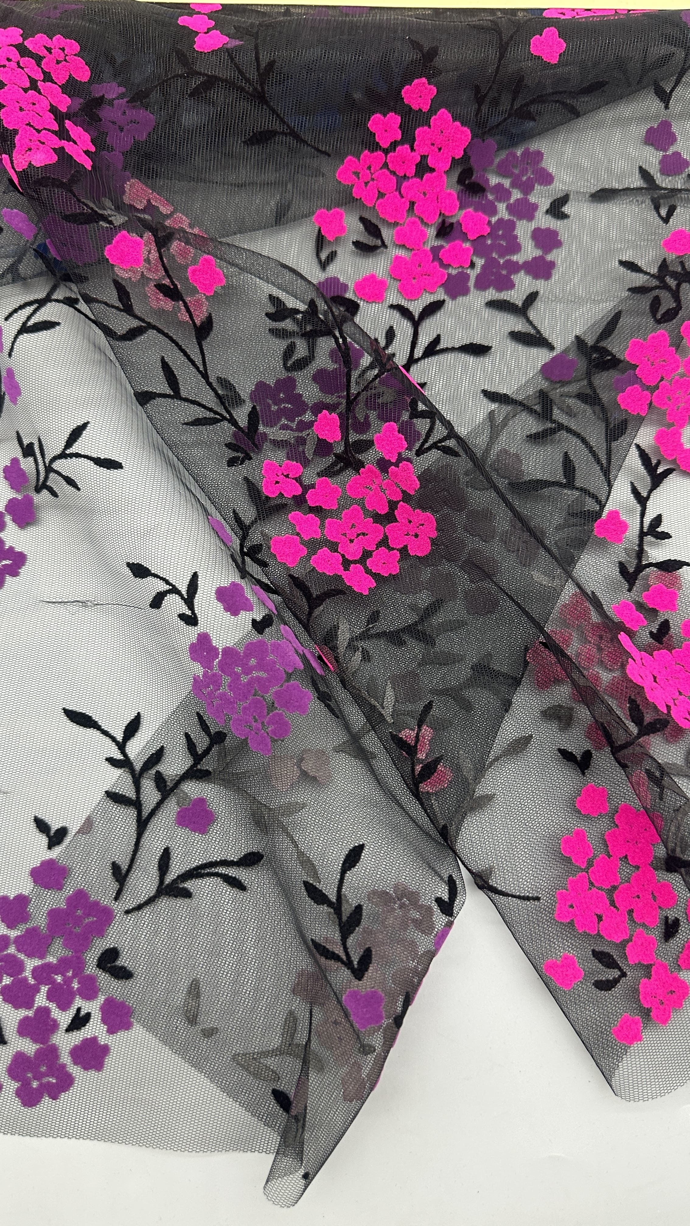 | 강조하다: | transparent flocked mesh fabric,customized leafy party fabric,elegant flocked mesh material |