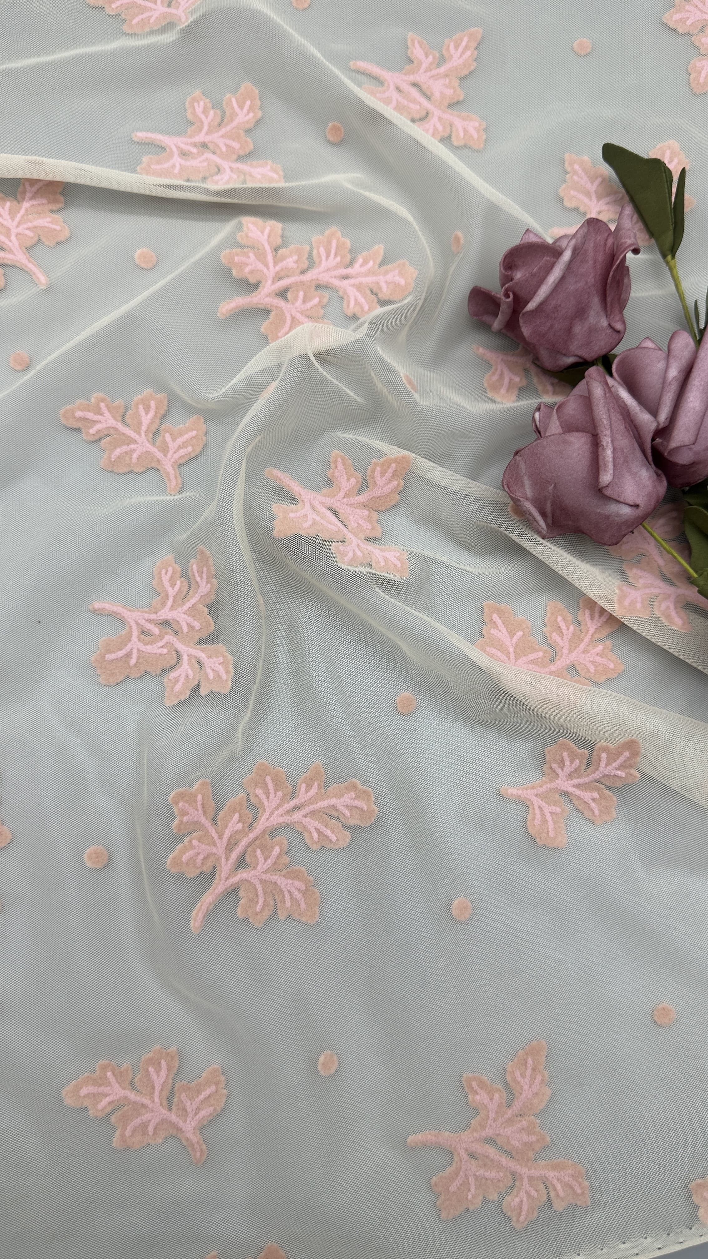 | 강조하다: | flocked mesh lace fabric,customized leafy fabric design,elegant flocked mesh material |