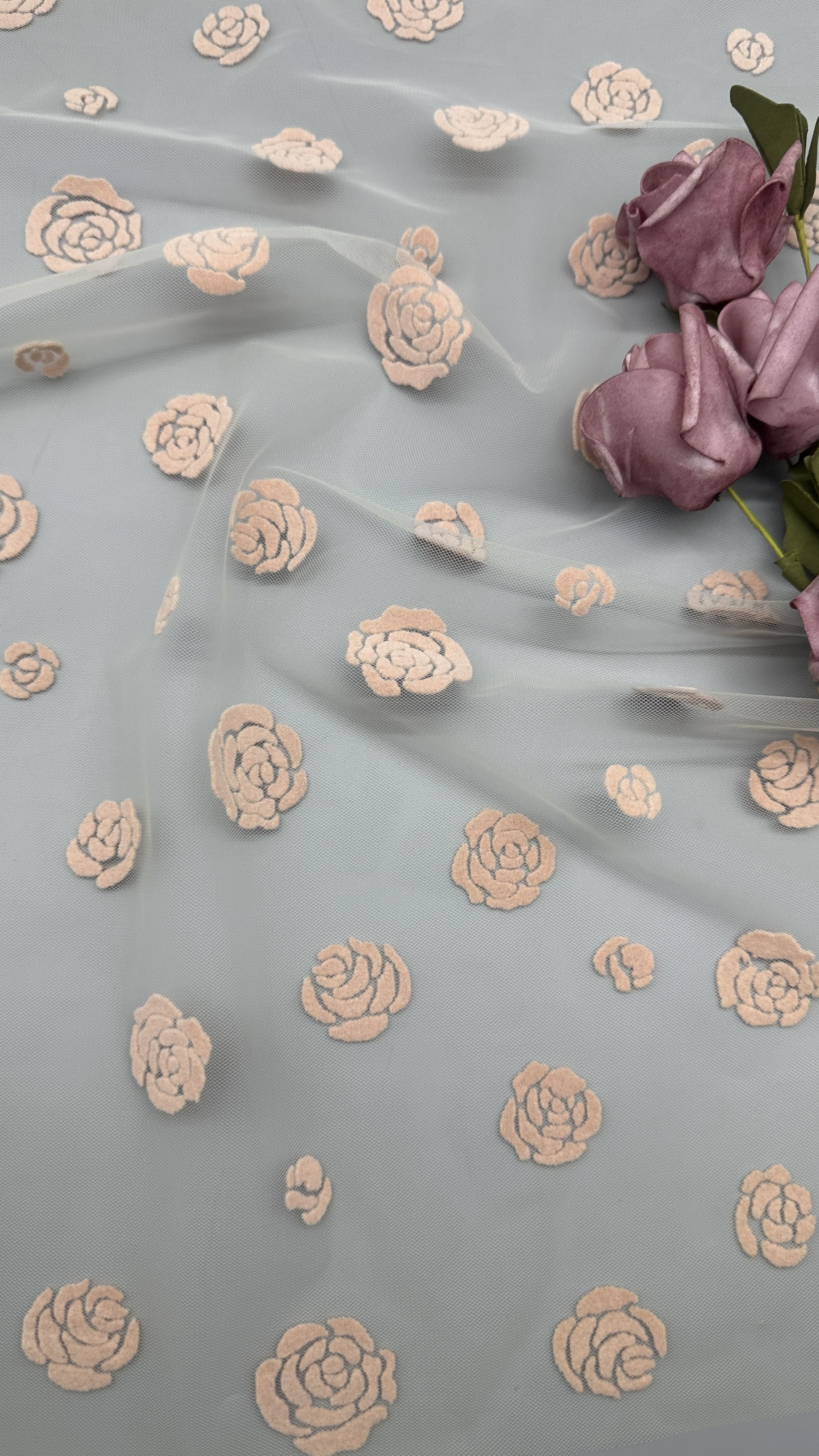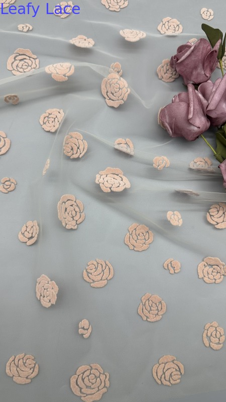 | 강조하다: | yellow rose flocked mesh fabric,elegant flocked lace fabric,luxury customized mesh fabric |