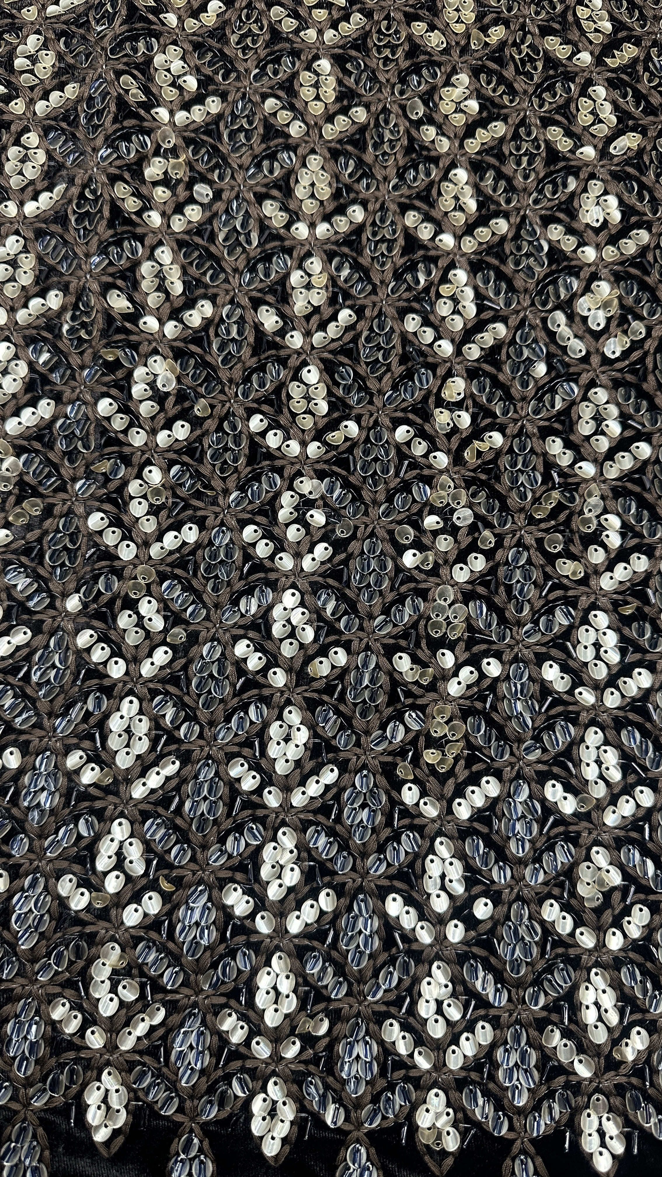 | 강조하다: | 시킨 찌감치 직물,럭셔리 자수 가운 원단,특별 디자인 스팽글 원단 |