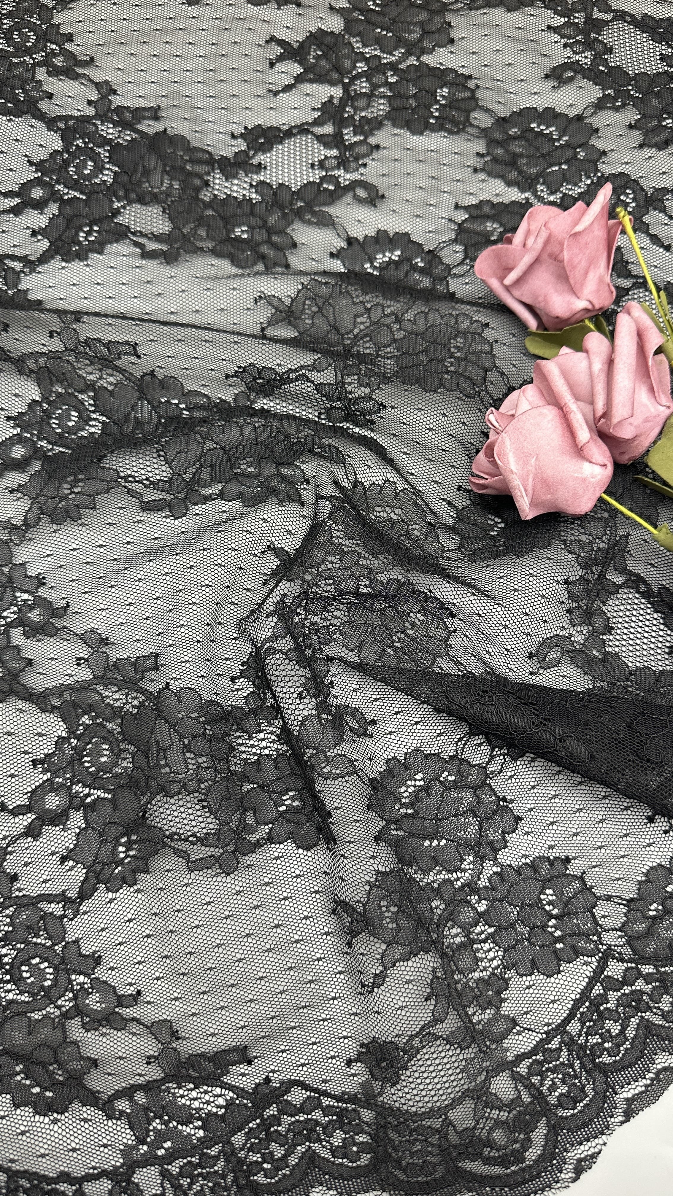 | 강조하다: | Black French Chantilly lace trim,Elegant Chantilly lace for wedding dresses,Guipure lace trim for dresses |