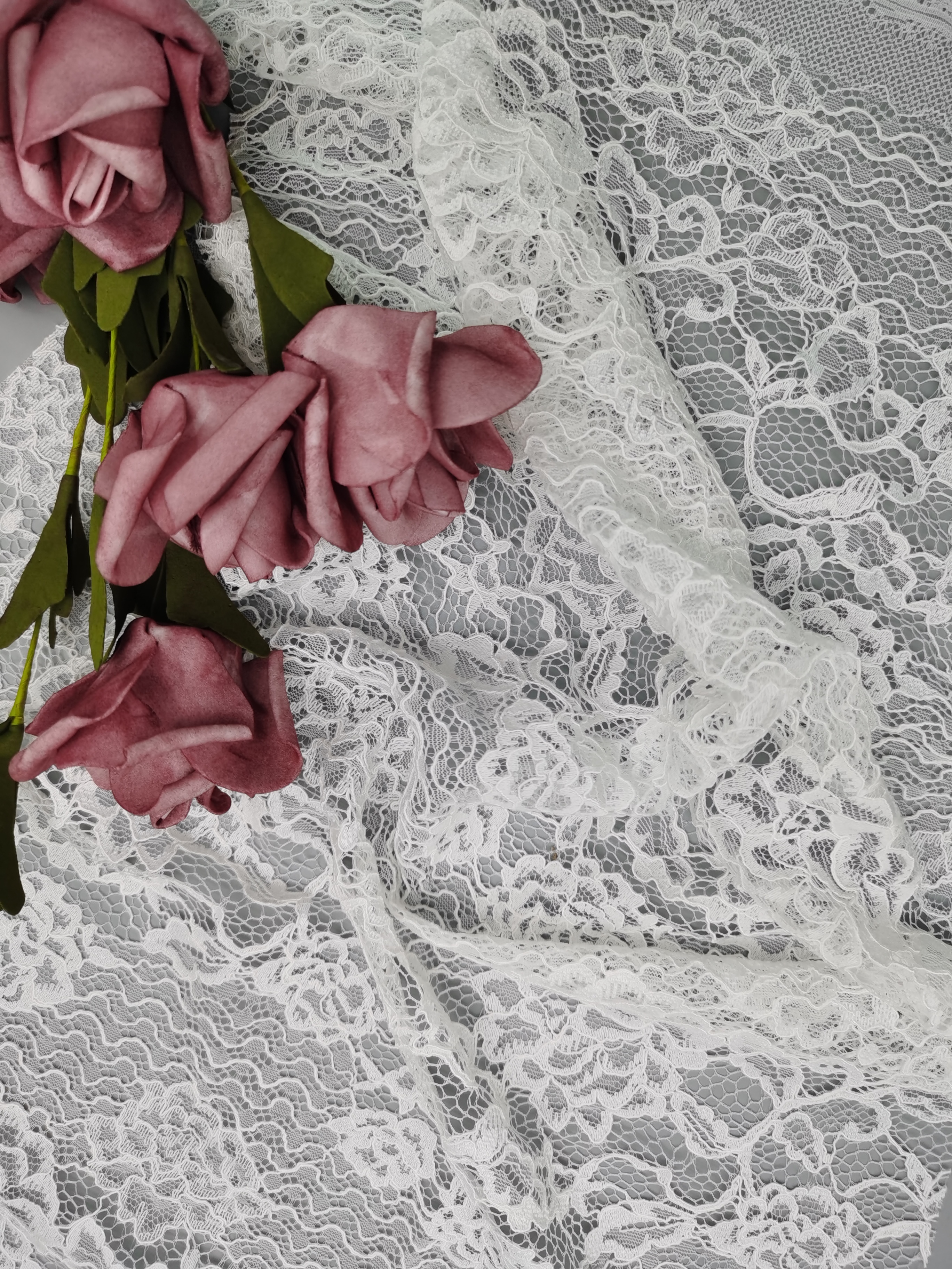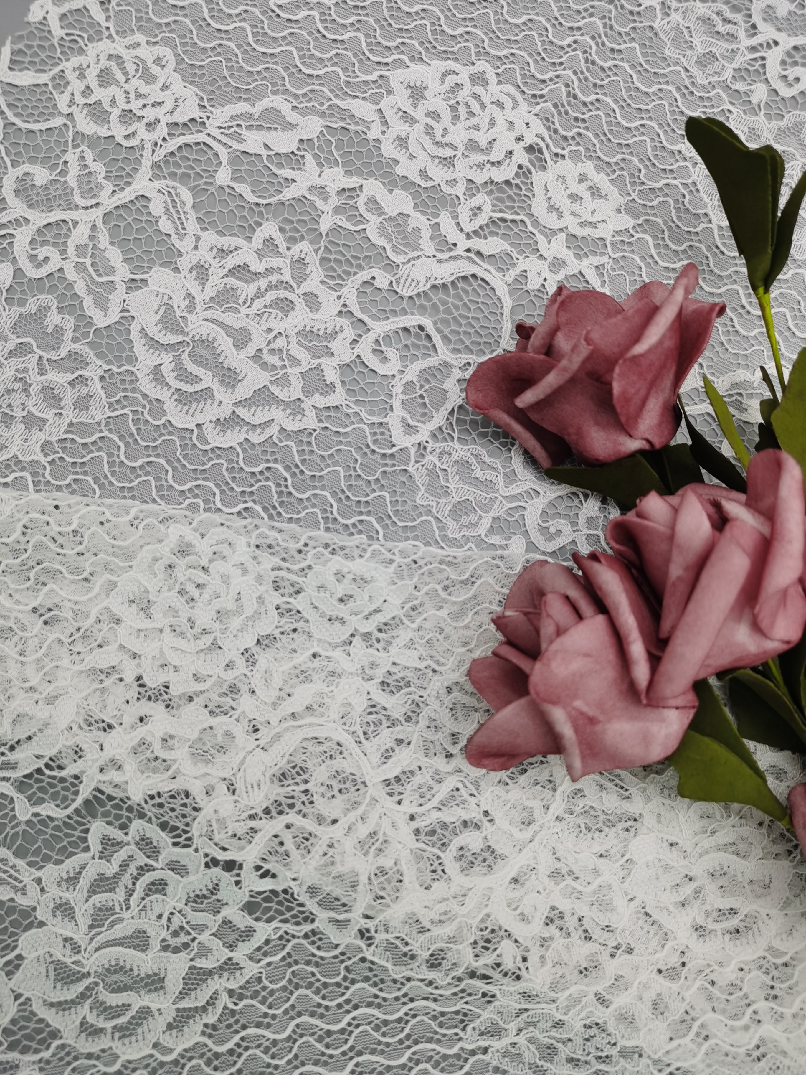 A creative team keeps abreast of trends. The research facilities and production equipment are all advances. Most of our patterns are copyrighted and based on original artwork. Most important is our focus on breakthrough of the techniques that advance the art of lace marking . Additionally, Leafy Lace Carries the enough greige and finished colors to response to our customers’ s rapidly changing needs.